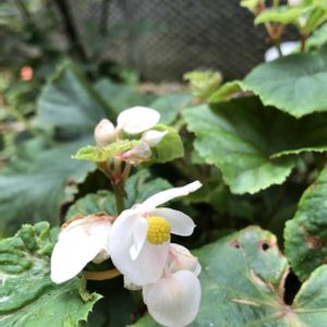 白花秋海棠(シロバナシュウカイドウ) シーズンギリギリで滑り込み開花してくれた 大好きな花 零れ種で 夏は半日陰の裏庭の至るところにハート型の葉っぱを広げていましたが 秋の声を聞く頃には大半は消えて この一角にだけこんもりと佇んでいた株 まさかの開花に大喜びです ありがとう😊 この場所が気に入ってくれたんだね (因みに 親株は鉢の中で殆ど姿を消してしまいました)