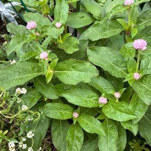 こぼれ種の千日紅 栄養たっぷりなのか葉っぱがたわわ こぼれ種エリアの子達 ちっちゃなお庭のお楽しみ