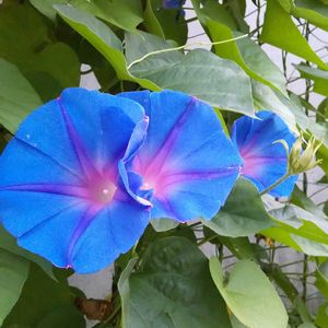 琉球アサガオ(ノアサガオ) ヒルガオ科 サツマイモ属 かって、夢中になって育ていたときがありました。 2000年から取り組み、冬は実家の兄の農業ハウスで苗を温存して、5月半ばに地植えしてタナ2*2mを作りに1株のツルを何本も伸ばして肥料もたっぷり与えて9年目に1日の花数を300越えの332ケを達成したことがあります。 ツルは10cmも伸びるので、毎朝大変でした。 栽培を止めて10余年、鉢植えを育ててみました。