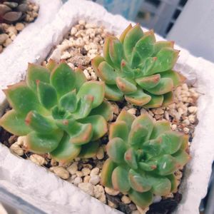 エメラルドリップ? グリーンエメラルド? わからなくなった子😅 触ると葉がポロポロ落ちます💦 なので勝手に葉挿し😁 あちこちいっぱい増えます😉 お母さんは葉数が増えて 段々大きくなって来ましたよ