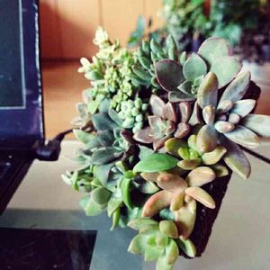 ガーデンexpoで中国人等にいじり倒され瀕死の状態だった着生ボード多肉着生がなんとか復活 本日よりパソコンの横に戻ってきました!