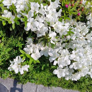 ATMへ 🚲️〜🎶 こなあいだの 白ツツジさんの 蕾 どれか判りません (^_^;)が みんな咲いてるの見られて シアワセ✨️