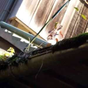 秋明菊さん達に感激し 😂 立ち話をしてた頭上の樋に苔🎶 そこに種が 舞い降り 🌱目を出し何年目なんかな 紅葉してる? 🌏️の長い時間 ⏳️ 色んなのが芽吹き 今、一員として命を生きている ✨感謝✨