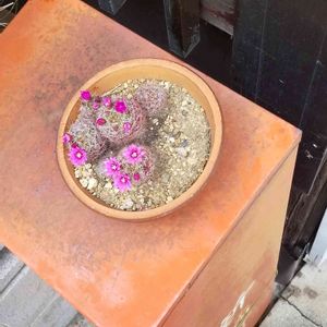 カワイイピンクのお花がいっぱい🎶 お祖母ちゃんが色んなシャボテンを並べてたけど お花は咲かないと思ってた 幼かったアタシ お町内の🧯の赤い箱の上で