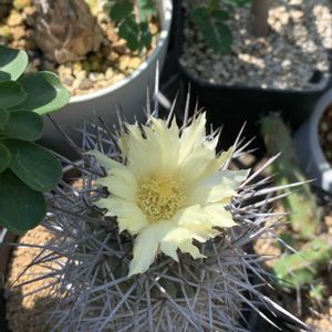 ロフォフォラ 有刺烏羽玉 にっくきダニにヤられた跡が痛々しいこのコもフレッシュな緑色が見えてきました😆 2:ヒポガエア畑でまたお花を発見☺️