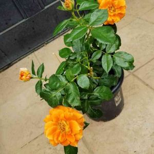おはようございます☀ 蜜柑色のバラ*万葉が咲いています。 一年生苗なので、株は小さいですが、また来年にも期待。 蜜柑が実っているみたいに、鮮やかな色合いです^ ^