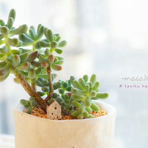 ということで、前回picの恋心ちゃんは、暴れ多肉と化してしまいました。 ( >Д<;) 過去、好評だった作品でしたのに。 (過去の様子は【masakoの多肉No.18】のタグからみれます) シンボルツリーは倒れてしまいました。 暴れた部分は、カットして仕立て直ししなきゃ。 【masakoの多肉No.18】
