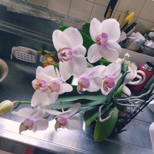 大阪府花き振興協議会 ミディ胡蝶蘭モニター 当選 💗キャンディ💗 綺麗な花が届きました。 ありがとうございました🎵 配送前にお電話で在宅配送日確認の連絡まで頂き、 丁寧な包装で届きました。 とりあえず小さな鉢と、 フラワーベースに入れて、 キッチンカウンターに置いて 毎日眺めております。 茎の長さ70センチくらい 花は9つも咲いていて とても華やかで、癒されます。 これから、育て方を学んで、 大切に育てていきます。