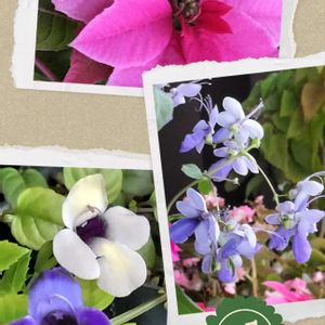 家の中、狭い縁側には 春がー? 🩷️プリンセチアが、赤かったけどピンク🩷️になってきました🤩 💜ブルーウィングも沢山咲いてまるで青い蝶々が飛んでるみたい🤗 💜🤍トレニアカタリーナの挿し芽した苗に花が咲いてました! 苗が弱るので、取らなきゃいけないわ😄 これはラムレーズンとアメジストです。 春まで保って欲しいね😍