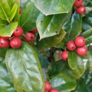 🌿植物はたくましい🌿 1️⃣セイヨウヒイラギ クリスマスが近づくと赤い実が…クリスマスホーリーとも云われてます🔴🔴🔴🔴 今年はたくさんの実が〜🥰 2️⃣お庭のヒイラギ 白い小さなお花がいい香り ꒰⑅ᵕ༚ᵕ꒱˖♡クンクン 3️⃣紅葉したミセバヤ お花はなかなか咲いてくれません…😂 4️⃣火祭 夏もずっと赤かったけど…だんだん鮮やかに〜🥰 5️⃣ワイルドストロベリー🍓 2週間ほど前に買った 梟のワイヤー¥80 鉢と苗は半額 お値打ち品大好き‼️❤ 少し大きくなったかなぁ〜😜
