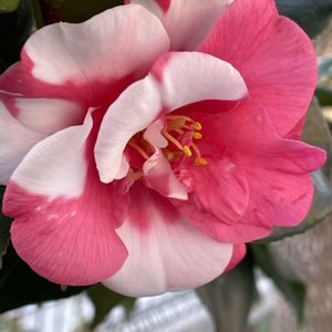 おはようございます(*´∀`)♪☀️ マーブル咲きのツバキ(椿)🌺 2つ目が咲きました٩(^‿^)۶