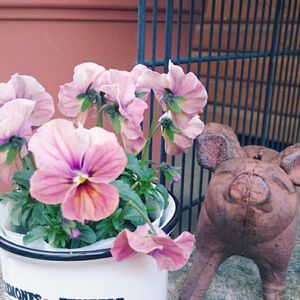 おはようございます(^O^) 今日から寒くなるみたい 今朝も可愛く咲いています ブタちゃんと一緒に♪