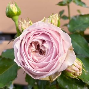 岡松ローズのさざ波です、春に新苗でお迎えして初めての開花です♡ 花びらたっぷりで可愛らしい感じで、ティー系の甘い香がほんのりします。
