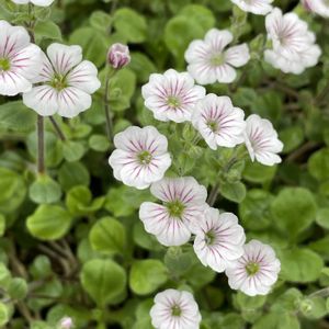 カーペットカスミソウ おはようございます🌧️ 白に赤ピンクの筋がある可憐な花びらですね🤍🩷💕