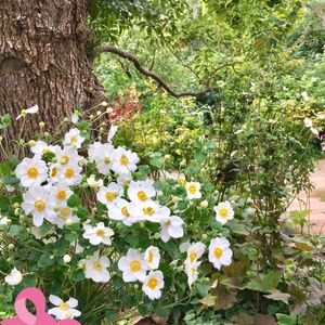 シュウメイギクが、まとまって 咲いていたので 加工アプリを使って リボン🎀結びをしてみました😊 こんなにたくさんの シュウメイギクの花束を 貰えたら嬉しいなぁ😆🎶 横浜イングリッシュガーデンにて撮影