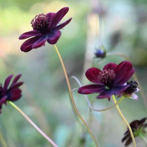シックなワイン色のチョコレートコスモス🥀とクランベリーのハンギングがミモザの木の下で秋風にユラユラ🍂🍁🌾