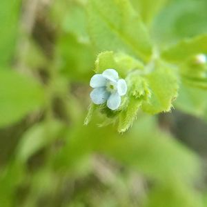 ハナイバナ(葉内花)ムラサキ科ハナイバナ属 田んぼまわりに小さなハナイバナが咲いてました。 ほんとに小さなお花です。2〜3mmの大きさです。 日本各地の畑や道端に生えてます。 和名は「葉の内花」に由来し、茎の上部の葉と葉の間から花が咲くことにちなんで名付けられました。 花は直径2〜3mm程度の小さく淡い青紫色で、中心部が白いことが、似ているキュウリグサ(中心部が黄色)との見分け方のポイントです。