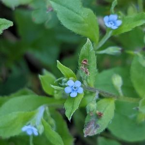 ハナイバナ(葉内花) ムラサキ科ハナイバナ属 花友さんの投稿見て、キュウリグサだと思っていたのはハナイバナではないかと確かめに行きました🚶♀️ 副花冠の部分が白い(キュウリグサは黄色)ので、ハナイバナでしたね💠 葉と葉の間に花をつけるから「葉内花」というのも納得🌱💠🌱