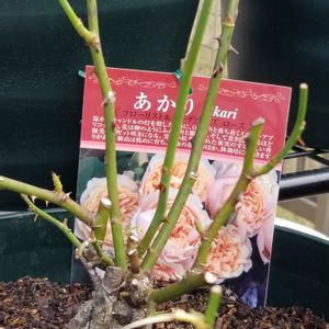 先ほどの和ばら【あかり】🌹さんの 苗のアップです!! 今までお迎えした苗には、こんなに細いのばかりとかなくて… ちょっとだけ心配(๑ó﹏ò๑) 販売元は、信頼しているところなので、この子の特長なのかと思うようにしています