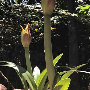 ニョキニョキ〜っと伸びてきたアマリリス **・。l l 。・** l l **・。l l 。・** 初めてですが✨棒の日✨に参加させて 下さ〜い😄 蕾がわれてきました🎶 元気に咲いて欲しいな😄