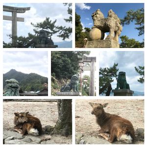 こんばんは 昨日に続き広島県宮島の 世界遺産⛩厳島神社の思い出で 毎月14日は🏷石の日に参加させていただきます🙇♀️💕🎶①〜⑤ ①狛犬さんと🦌鹿ちゃんと ⛩厳島神社本殿の狛犬さんは尻尾が🖐みたいで💦素晴らしかったですが人が多くて写真はありません😆 ②石灯籠の上にカラス🖤!? でも作り物?? ③⛩大鳥居までが干潮時の砂地には大きめの🕳穴が✨️ 🦀蟹さんのかな?小さな🐚巻貝は大概ヤドカリさん!! 人の近くに白鷺さん♡ ④🦌鹿ちゃんとシソみたいな植物 シジミチョウ💎が止まっていました。 ⑤ロープウェイ🚠で弥山みせんにも行きました。眺めが良くて奇岩や自然を満喫しました🥰