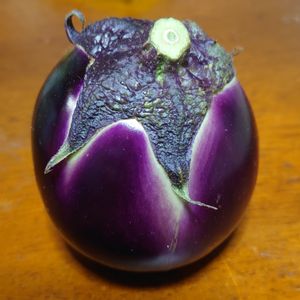 待望の賀茂茄子ひとつ目が穫れました🤗 ひとつ目は硬いと聞いていますが、ほんまにゴルフボールくらい硬いんですけど😉