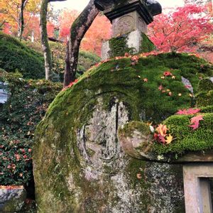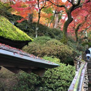 大興禅寺の紅葉🍁門の屋根にシダ類でしょうか🤔しっかり根付いてます🌿もみじの落ち葉が🍂お花の様です😊 一番好きな写真😊