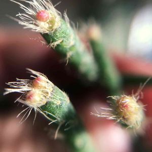 母の日に家族にプレゼントしてもらった子に、初めて花芽が🌸✨ リプサリスの中でも、フロストシュガーの花は可愛いなぁ、とGS眺めてましたが、ついにうちにも‼️ 嬉しいな〜💕💕💕