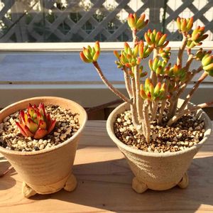 トパーズと八千代をビバホームで買った和風な鉢に植えてみました(ृˊ◡˴⁎৲ु॰∘♡ なんかいい感じ💕💕