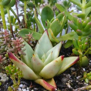 凍って解けて外葉がふにゃふにゃになってたトパーズ、もうダメかと思ってたら無事復活してくれました♡ 周りのセダムがパリパリに焦げてダメになってたので仕立て直しました( ˊ̱˂˃ˋ̱ )