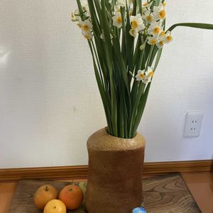 こんばんは♪ 千葉から戻った夫のお土産 水仙の花と色々なみかん🍊 1️⃣さっそく水仙を花瓶に どかっと 下に橙とネーブル 2️⃣水仙の花 八重咲きもあるヨ 土手から刈って来たようです♪ 3️⃣温州みかんと柚子と橙 ネーブルオレンジ🍊美味しい😋 4️⃣5️⃣今日公園で 開けてる場所なので カイトがいくつも飛んでました🪁 青空がとても綺麗でした♪