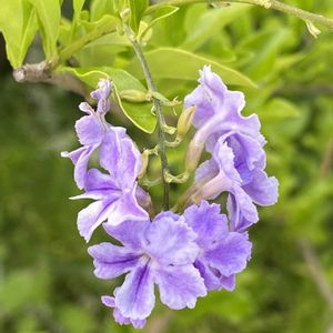 デュランタ レペンス ときめき(ロマンス) デュランタの白花アルバの花が終わった頃から咲き出した藤紫色のトキメキ。 房で垂れ下がるように咲いたら綺麗だろうなと写真を撮るタイミングを待ってるけど...😌 咲いては散りなので、花の綺麗な時が終わってしまいそうで、upすることにしました。 地植えにしたら、大きくなるらしいけど、小さな鉢に植えてるので、花がたくさん咲かないのは、まだ木が充実してないからなのかな?