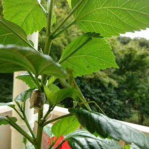 👋😃☀ ハイビスカス🌺の枝にカマキリが卵を産んでました❗ この命どうすれば育つのか? 年内に剪定するのに❗ どなたかカマキリ育てた方居ませんか?