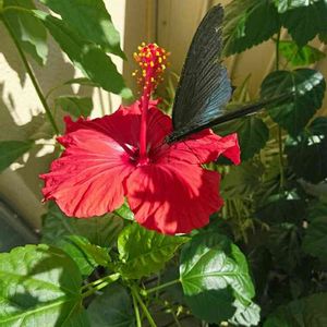 揚羽蝶第二段 今日はどうやら雄の揚羽蝶が😁 先日はこわごわでしたが😱 今日は余裕で近寄り😁 奥さまが教えたのね❤家のハイビスカスの事👌