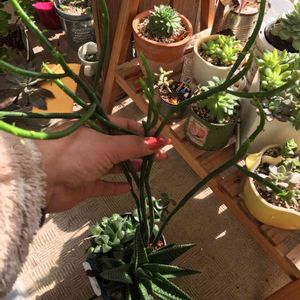 笑っちゃいかんけど笑ってしまう😂 もはや原型がわからないくらい 徒長してしまったルンヨニー様🌱 うちのベランダ 日当たりの条件がよろしくないから だいたいの子は徒長するけど この子が最強だ😂