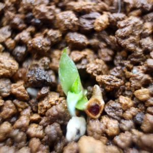 雨が降ってきたな。 トックリランの横に 何か生えてきた🌿多肉が落ちてたかな?(笑) #雨 #多肉植物野ざらし #頑張れ
