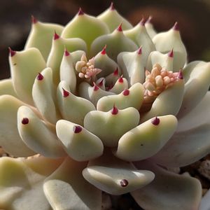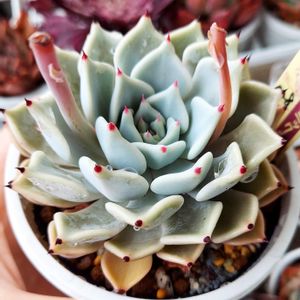 ✤ミックスベリア 雪つぼみ 新葉の爪が赤くて可愛い🥰 でも葉っぱの色がそれぞれ違ってるのはなんでかな|•ө•)? 根詰まり? 2年は植えてないので植え替えしなくっちゃ😅 ⬇️過去pic 🏷kyu.雪つぼみ