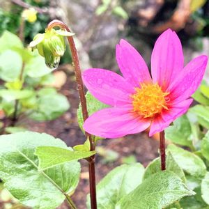 一重のダリアが咲いてます😁 実家の庭にはお花が沢山咲き誇ってますよ まるで森の中の様です✌️