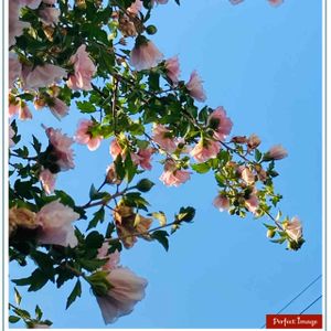 ムクゲが青空に映えて美しい💕