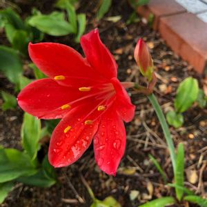 一輪だけ、咲いてます。 キバナサフランモドキ💛💛 まるで中に、カマキリちゃんがいるみたいに見えるのは、私だけ❓😆💛🌿🌿 花言葉* 汚れなき愛、期待💛