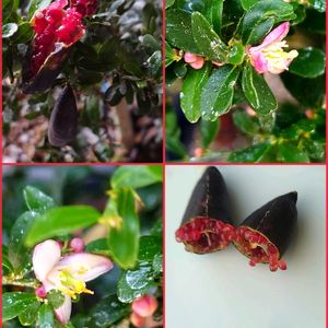 🏷真っ赤な火曜日❣️ フィンガーライムレッド 🍊柑橘系🌳6月から花は沢山咲くのですが、2つだけ実りました♪ ↘️タネ意外と大きい 4枚目♥多肉🔥火まつり