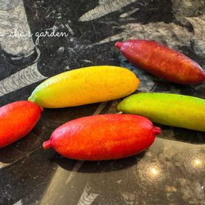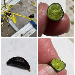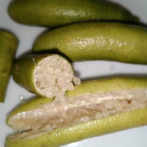 フィンガーライム🍋🟩の初収穫と味見をしました。 炭酸飲料に入れるとキラキラと綺麗😍ですよ。