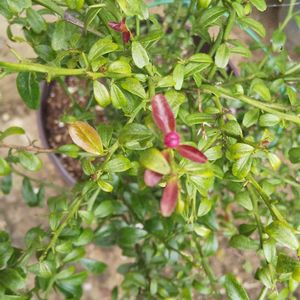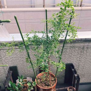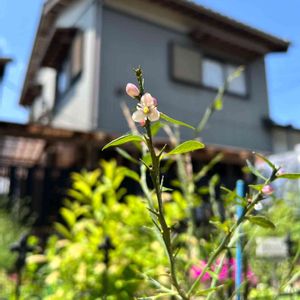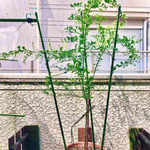 3年目を迎えたフィンガーライム🍋 褐色の新芽が出てきています。 最初は枯れているの😰かと思いきや🍂 育つにつれ、鮮やかなグリーンに😊🌱 枝が横に伸びてきているので、上に誘引した方がよいのかなぁ〜🤔 と、思いつつそのまま放置😓 ピンクの実がなる予定ですが、まだまだ先のようですね😂