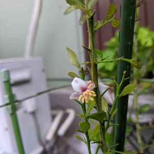 フィンガーライムの蕾が出てから結構、経ちますが…やっと咲きました、一輪だけですが。 葉っぱが小さいのと同様、他の柑橘に比べると花弁が小さいですね。 そもそもフィンガーライムの実の大きさが"どれだけ"なのかしりませんが、こんな小さな木でも実がなるんですかね? 実が着いてもほとんど落とした方が良さそうなぐらい小さいので心配です。