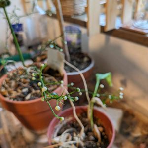 フィンガーライムのお花が咲き始めました🌸 トゲがあってかなり痛いので 冬にかなり枝を剪定しちゃったけど 元気そうでよかったです フィンガーライムですが、 実は2種類育てています❣️ 一つは冬に葉っぱが全て落葉してしまい、 すっかり枯れ木状態になっていたので てっきり枯れたと思っていたら 4月の終わりになって 新しい葉っぱが出てきてくれました🌱 生産者さんに聞いたら 種類によって、冬は落葉する種類と、 冬も常緑で越す種類とあるそうです 何も知らずに育てていたので 一つは完全に枯れたと思っていたけど、 5月近くになって葉っぱが出てきたので 嬉しくなりました✨ 枯れたと思ってすぐに捨てずに ズボラに放置していて よかったです🥰💕 綺麗好きでいつもキチンとしてる人なら 枯れた木だと思って捨ててたと思います