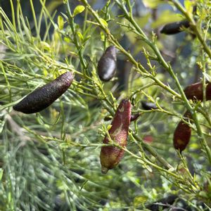 先日立ち寄った園芸店でたくさん実のついたフィンガーライムを発見🤗 中の実は宝石みたいにキラキラした粒々がぎっしり詰まっているらしい✨