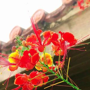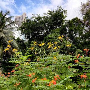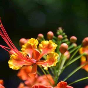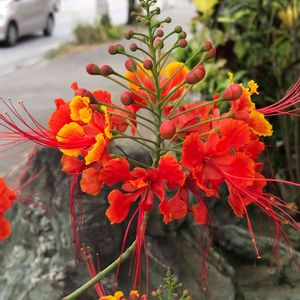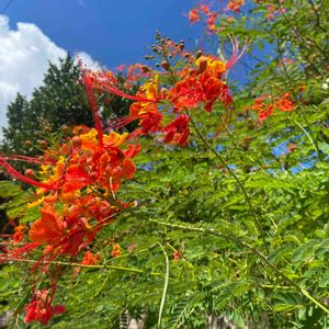 私の住む浦添市、市民の花木 『オオゴチョウ』が公園で綺麗に 咲いています🌺🧡💛🌿🌿🌿 西インド諸島原産 マメ科 ジャケツイバラ属 学名:Caesalpinia pulcherrima 花言葉:『自分らしく生きるのが一番』 『輝く個性』 オオゴチョウは『サンダンカ』『デイゴ』 と共に沖縄県の三大名花です🧡 🧡蝶が翅を広げて空を舞っている様に 見えるのが名前の由来となっています🧡