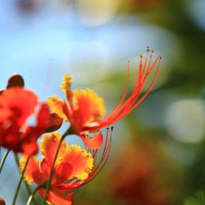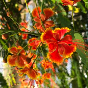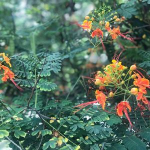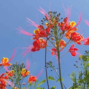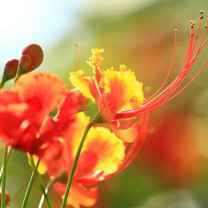 【沖縄の植物シリーズ】オオゴチョウ オレンジとイエローが元気をくれる 情熱的な色合いとどこか涼やかな花姿 大きく育った庭木として見れるのは、南国ならでは