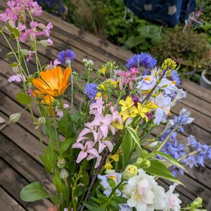 今日はお墓参り。 シラーぐらいしか無いな〜と、思ってたら、キンギョソウ、カモミール、のらぼう菜の花、キンセンカ 矢車草、茎の長いシレネ、たくさんありました。 ナルコユリも、忘れずに。 ポットに札だけ刺さってたヘンリーヅタ、やっぱり生きてたね。 秋には真っ赤になってね。 ゲウムは、イエローも、オレンジも、頑張って育ってます。 昨日は、お花屋さん行きました。 私がトレー買いの三人目でした。 水曜日は、行く時間が難しい。 今日も斑入り見つけました〜。 すみっこさんの、斑入り見つけ隊⑨参加します。