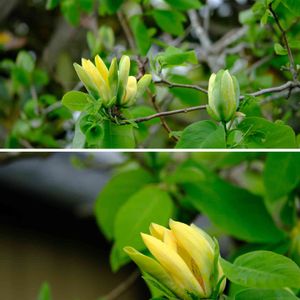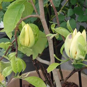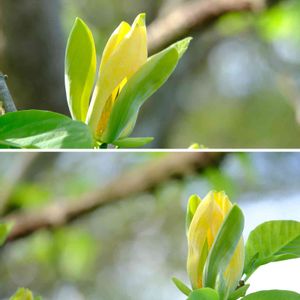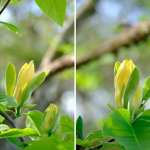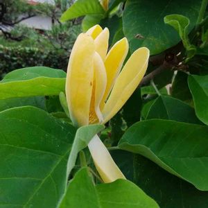 今日の日中の撮影です。 雨が止みかけたタイミングで撮っています。 名前の通り黄色い木蓮です。